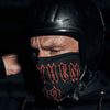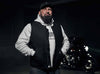 Lederjacke Rampage: Biker in schwarzer Premium-Lederjacke mit Motorrad und Helm