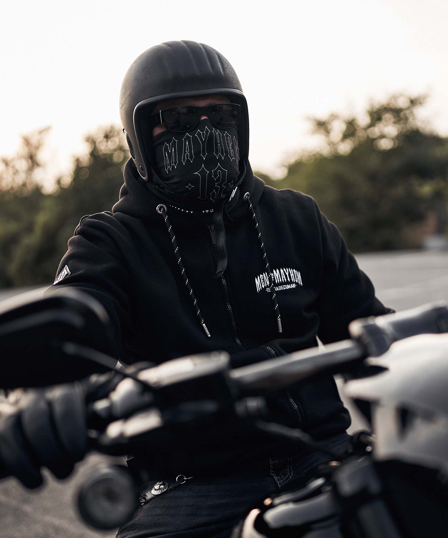Die MEN OF MAYHEM Sweatjacken sind nicht einfach nur Hoodies mit einem Reißverschluss. Unsere Sweatjacken sind mit einem double layer ausgestattet, welcher die Jacke besonders warm und voluminös macht. Der double layer ist eine zusätzliche Schicht aus Baumwolle, die im Innenteil der Jacke angebracht ist.
