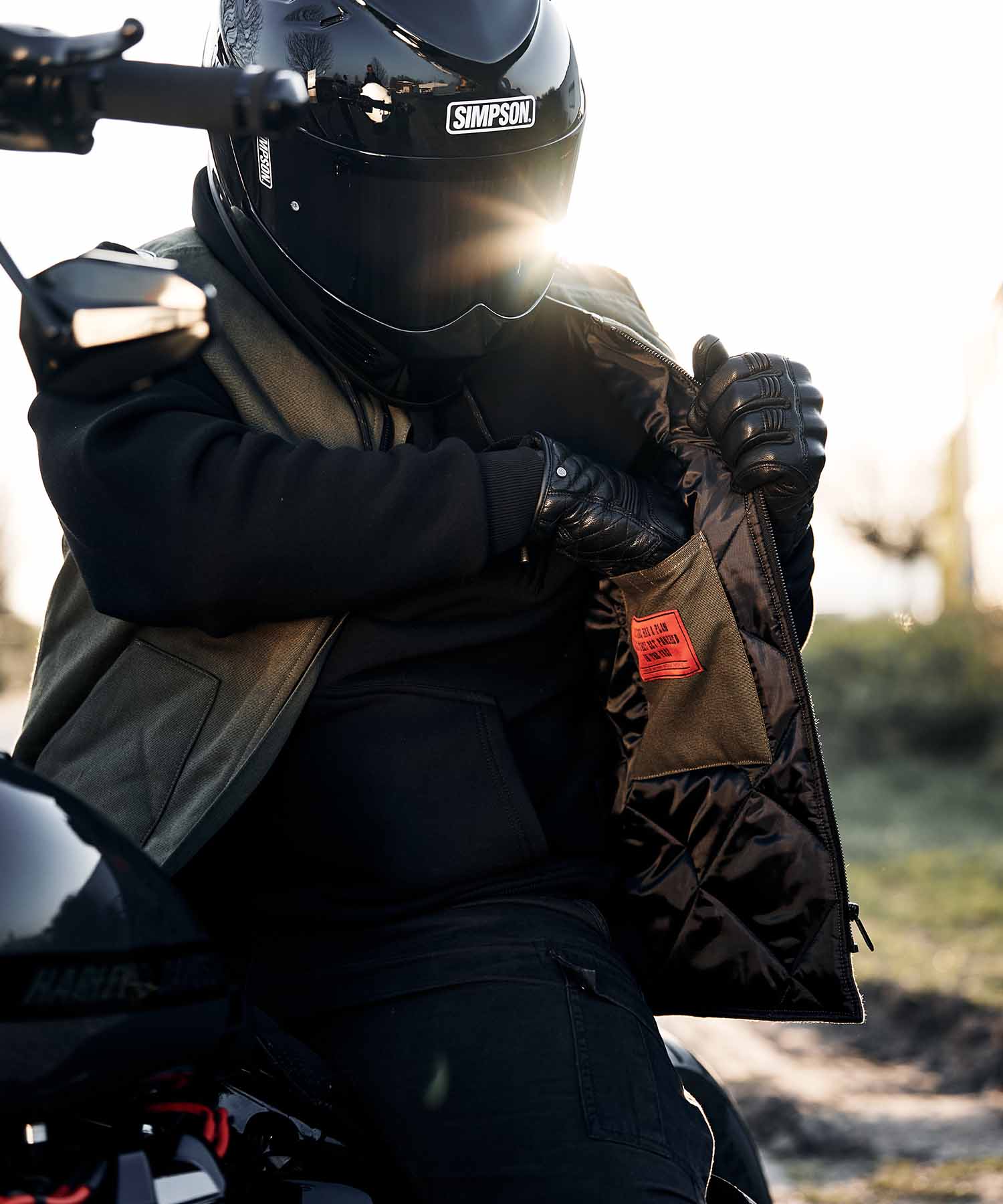 Dank des intelligenten Designs mit drei verschiedenen Stofflagen ist diese Weste perfekt für jede Jahreszeit geeignet. Egal, ob du auf dem Bike unterwegs bist oder deinen Alltag bestreitest, diese Weste bietet die nötige Festigkeit und Stabilität, ohne an Komfort zu verlieren. Der eingebaute Windstopper hinter dem Metall-Reißverschluss gewährleistet zusätzlichen Schutz vor Wind, selbst bei höheren Geschwindigkeiten auf dem Motorrad.