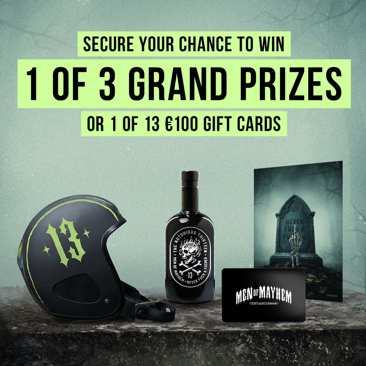 The sweepstake runs from October 31, 2025, 12:01 AM to November 2, 2025, 11:59 PM. Every person who places an order in the Men of Mayhem online shop or at the flagship store in Hamburg-Barmbek during this period automatically takes part in the sweepstakes. You can find all further information and terms of participation here.