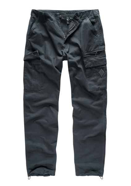 Our cargo pants made of sturdy 300g cotton twill have a loose fit for comfortable wear and good mobility. The surface has been specially brushed to ensure a pleasant feel. An additional zipper pocket is located on the left leg, which can be easily accessed even while riding a motorcycle. The waistband has 3 integrated elastic bands for a comfortable fit. Additionally, the ankle cuffs are equipped with cords for adjustment if necessary. The pocket on the left leg features our 13 metal label, while the „MEN OF MAYHEM“ lettering is embroidered on the right back pocket.