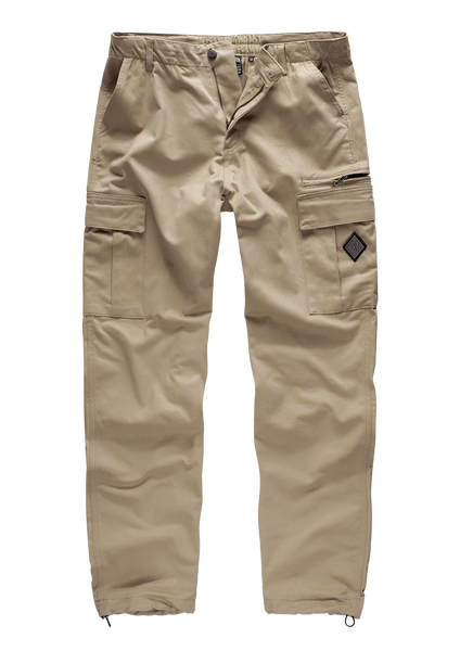 Our cargo pants made of sturdy 300g cotton twill have a loose fit for comfortable wear and good mobility. The surface has been specially brushed to ensure a pleasant feel. An additional zipper pocket is located on the left leg, which can be easily accessed even while riding a motorcycle. The waistband has 3 integrated elastic bands for a comfortable fit. Additionally, the ankle cuffs are equipped with cords for adjustment if necessary. The pocket on the left leg features our 13 metal label, while the „MEN OF MAYHEM“ lettering is embroidered on the right back pocket.