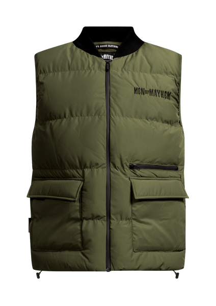 The ribbed collar is pleasantly soft and forms the upper finish. The embroidered Men of Mayhem logo on the chest rounds off our vest. If you prefer a looser fit, take one size larger.