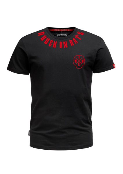 No mercy for traitors. This T-shirt features "ROUGH ON RATS" lettering around the neckline, the Men of Mayhem logo on the chest, and the 13 prominently printed on the back.