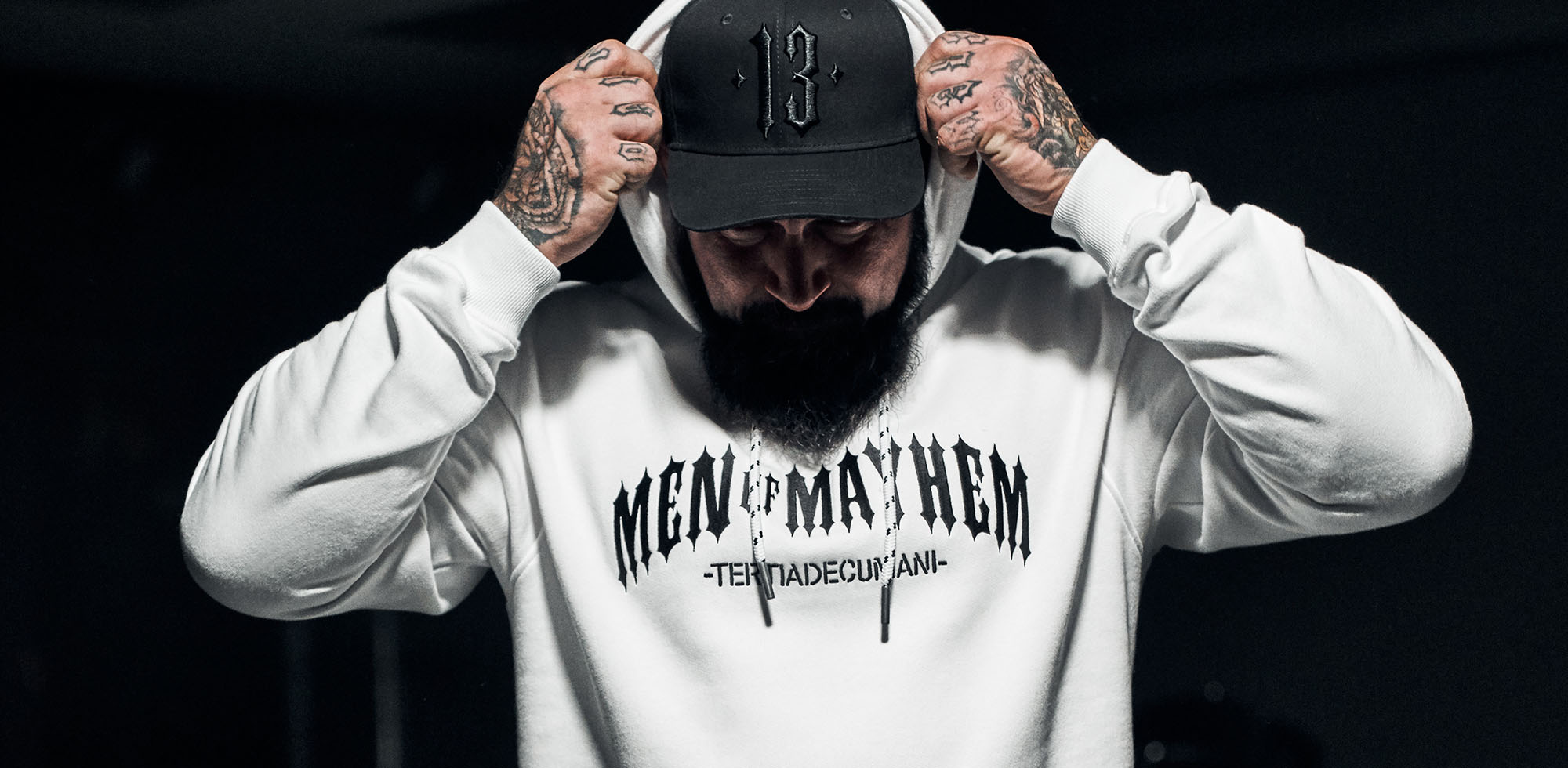 Die absoluten Mayhem Klassiker - Men of Mayhem Logo auf der Brust, 13 auf dem Rücken. Erhältlich in verschiedenen Farben, als T-Shirt, Crewneck, Hoody & Hoody Jacke (Zipper).