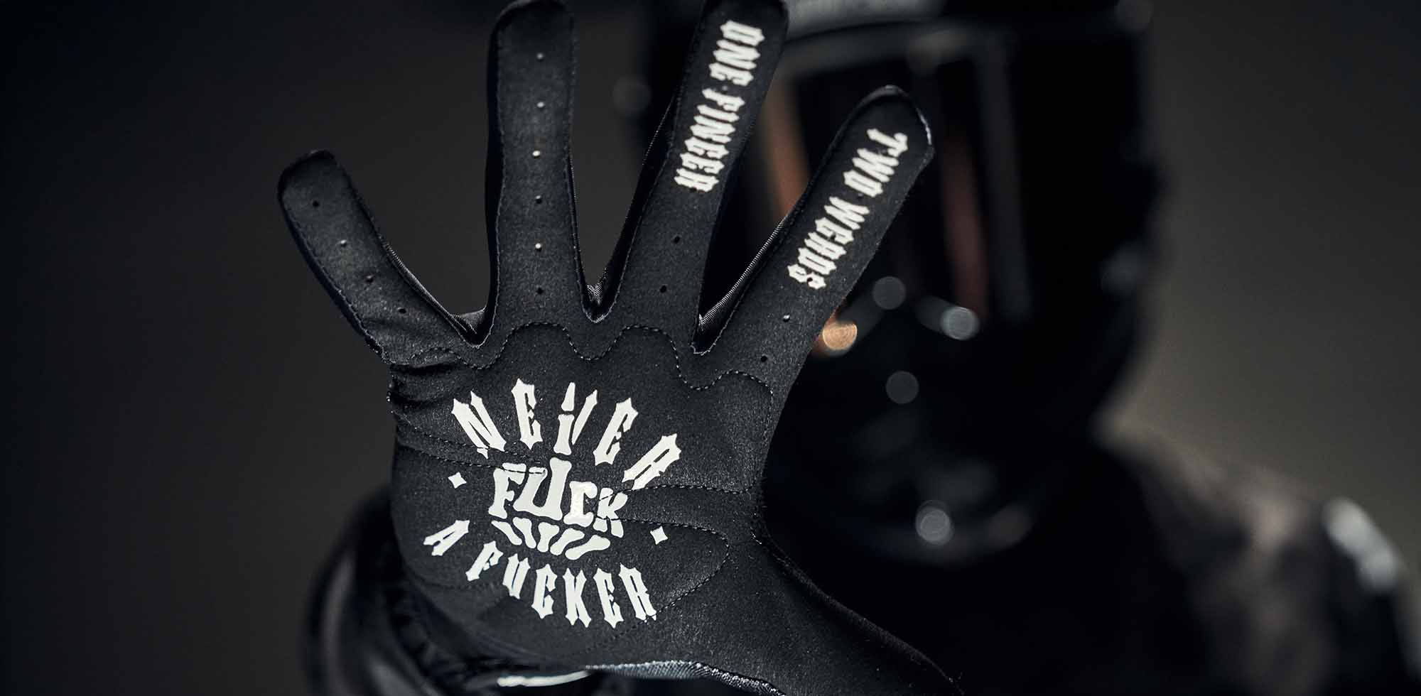 Auf dem Handrücken ist eine dezente 13 tief geprägt, während der Mittelfinger mit „Have a nice day“ und „Motherfucker“ für Kommunikation ohne Worte sorgt. Das Material ist griffig, langlebig und entwickelt mit der Zeit Patina – so wie es sich für echte Motorradhandschuhe gehört.