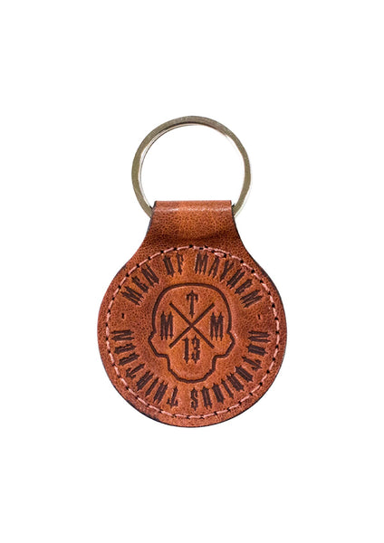 Deze robuuste leren sleutelhanger is gemaakt voor iedereen die een helder statement wil maken. Aan de voorkant zie je de Men of Mayhem-skull, omlijst door de woorden “MEN OF MAYHEM” en “NOTORIOUS THIRTEEN”. Op de achterkant staat onze duidelijke N.F.A.F.-gravure. De hoogwaardige afwerking en versterkte stiksels geven deze sleutelhanger zijn duurzame kwaliteit.