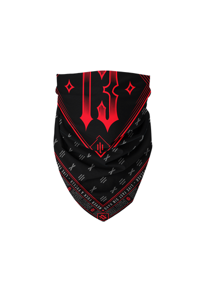 Altijd je gezicht bedekt! Onze 50x50 cm zwarte bandana met groot rood motief is de perfecte bescherming voor motorritten of andere activiteiten. Het kenmerkende Men of Mayhem-design geeft je look een stoere twist.