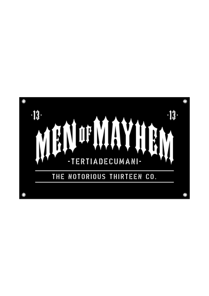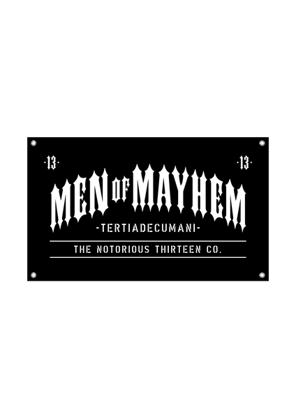Onze hoogwaardige stoffen banner brengt de Men of Mayhem‑look naar je muren. Het stevige materiaal en de vier metalen oogjes in de hoeken met reliëf "MEN OF MAYHEM" maken het ophangen aan muren, hekken of andere oppervlakken eenvoudig.
