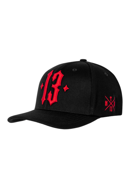 Onze Mayhem‑basecap is allesbehalve standaard! De pet valt op door het rode 3D‑borduursel van het cijfer 13 op de voorkant. De gebogen klep en verstelbare sluiting zorgen voor comfort, terwijl de elastische band ervoor zorgt dat jij hem precies naar jouw maat kunt aanpassen. Alle andere motieven zijn eveneens geborduurd.
