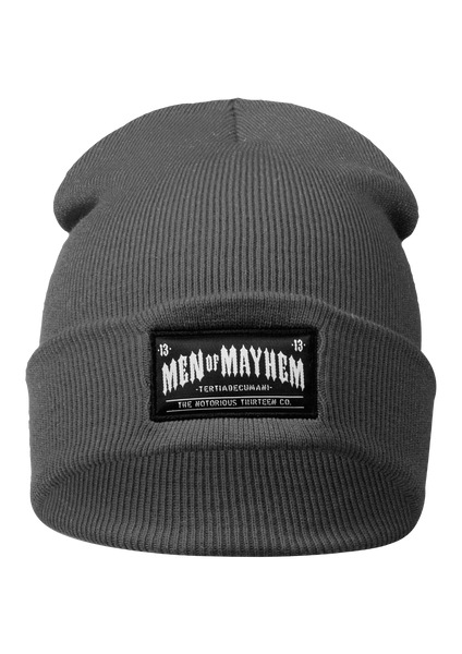 Onze klassieke beanie heeft een omgeslagen rand en een geweven Men of Mayhem‑label op de voorkant. Het dicht gebreide materiaal beschermt je betrouwbaar tegen wind en weer. Dankzij de viervoudige naad zit hij comfortabel op je hoofd.