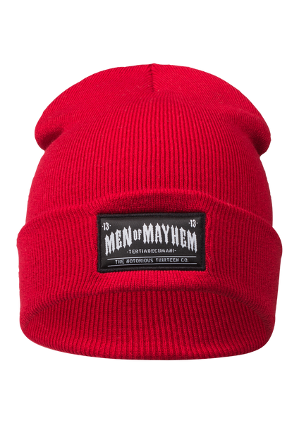Onze klassieke beanie heeft een omgeslagen rand en een geweven Men of Mayhem‑label op de voorkant. De strak gebreide stof beschermt je betrouwbaar tegen wind en weer. Dankzij de viervoudige naad zit hij comfortabel op je hoofd.