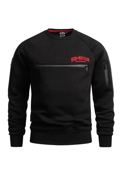 De crewneck valt op door het subtiele logoborduursel op de borst en de geborduurde 13 in de nek. Daarnaast is een PVC Mayhem-vlag op de mouw bevestigd en maken elastische boorden de trui compleet.
