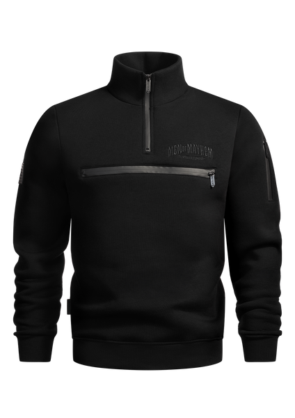 Onze Half Zip Core is een uiterst veelzijdige sweater die je betrouwbare warmte en ultiem comfort biedt dankzij de aangenaam zachte sweatstofmix. Praktisch en functioneel ontworpen, heeft hij een ruime frontzak, ritsen bij de hals, de mouw en de zakken. Voorop zit de kenmerkende Mayhem‑Skull‑rits.