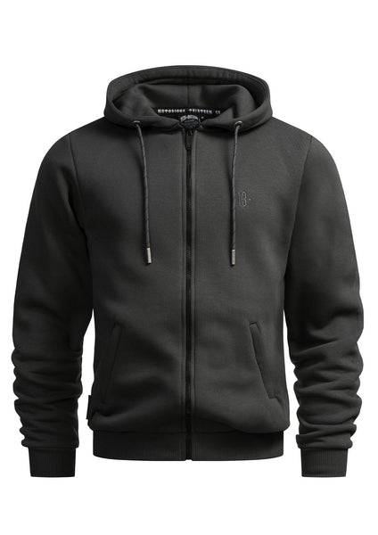 Außen: Die Hoodie Jacke besteht aus 80% Baumwolle und 20% Polyester, bei einem Gewicht von ca. 320 g/m².