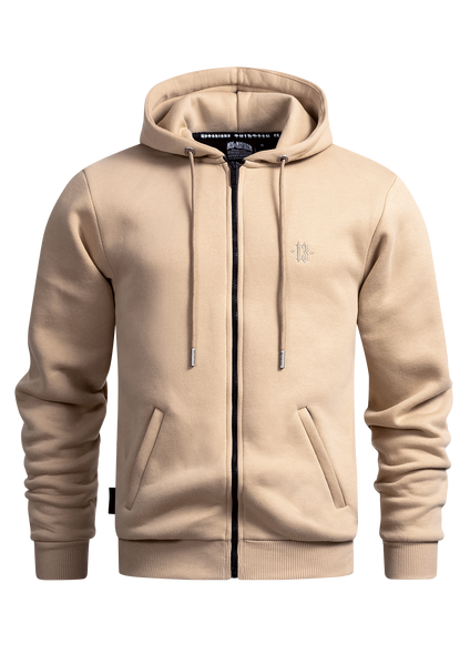 Außen: Die Hoodie Jacke besteht aus 80% Baumwolle und 20% Polyester, bei einem Gewicht von ca. 320 g/m².