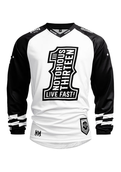 Onze ONE‑jersey heeft speciale Men‑of‑Mayhem‑features. Het honingraatvormige materiaal is niet alleen een visueel hoogtepunt maar ook zeer licht en ademend. Daardoor is dit jersey de ideale metgezel voor je volgende rit – op de weg of offroad. De zijpanelen hebben een extra mesh‑inzet voor optimale luchtcirculatie en ventilatie, ook op hete dagen. Dankzij het sublimatieprintproces blijven de kleuren langdurig helder en ondoorzichtig, zelfs na talloze wasbeurten.