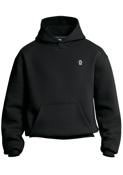 De Originals zijn het luidste understatement van Men of Mayhem. Geen opschrift, geen backprint – alleen de geborduurde 13 op de linkerborst. Wie het kent, herkent het. De ruime oversize pasvorm zit lekker los op de schouders en geeft je bewegingsvrijheid zonder z'n vorm te verliezen. Geen capuchonkoorden, strakke sportieve silhouet. De 320 g/m² zware sweatstof houdt z'n vorm en warmte vast en blijft zitten waar hij hoort.