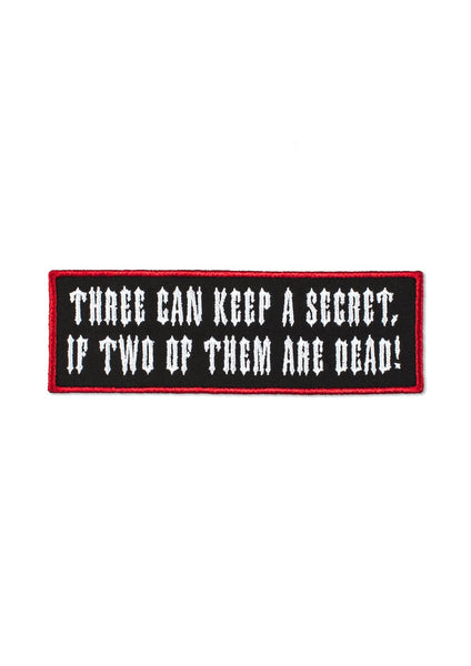 Geborduurde Three Can Keep a Secret patch met rode rand om op te naaien.