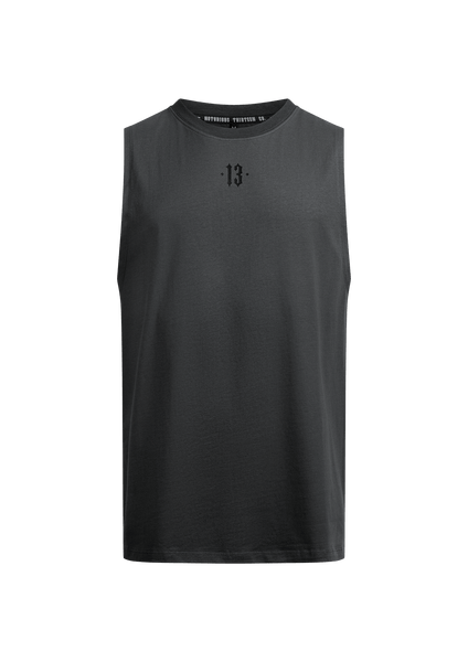 Het mouwloze Thirteen‑shirt levert gedurfde eenvoud met maximaal effect. Een strakke “13” op de voorkant en een subtiele MAYHEM XIII statementprint op de rug.