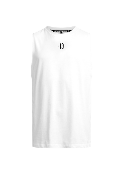 Het mouwloze Thirteen‑shirt levert gedurfde eenvoud met maximaal effect. Een strakke “13” op de voorkant en een subtiele MAYHEM XIII statementprint op de rug.