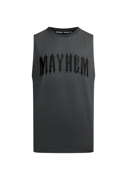 De Sleeveless Mayhem is gemaakt voor hete dagen en harde statements. Een brutale MAYHEM‑print op de voorkant en de iconische 13 op de rug – geen compromissen, geen franje.