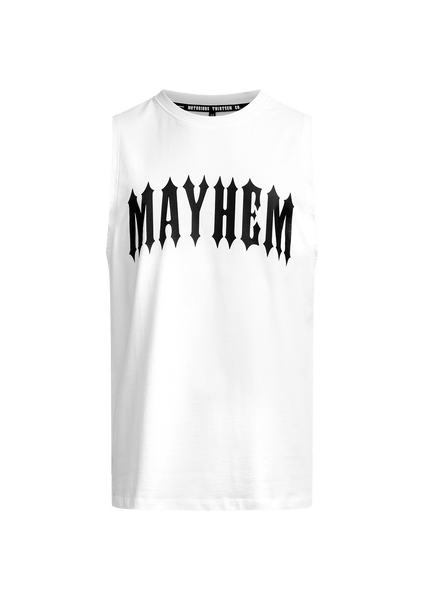 De Sleeveless Mayhem is gemaakt voor hete dagen en harde statements. Een brutale MAYHEM‑print op de voorkant en de iconische 13 op de rug – geen compromissen, geen franje.