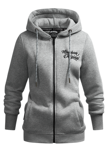 Onze Two Words One Finger‑hoodiejack voor dames combineert een heerlijk zachte, dikke sweatstof met hoogwaardige borduursels. Het cropped model heeft een aansluitende snit en is voorzien van tal van details. Een 'Mayhem Originals'-borduursel prijkt op de borst, een grote 13 op de rug en de kap is versierd met 'Two Words One Finger'.