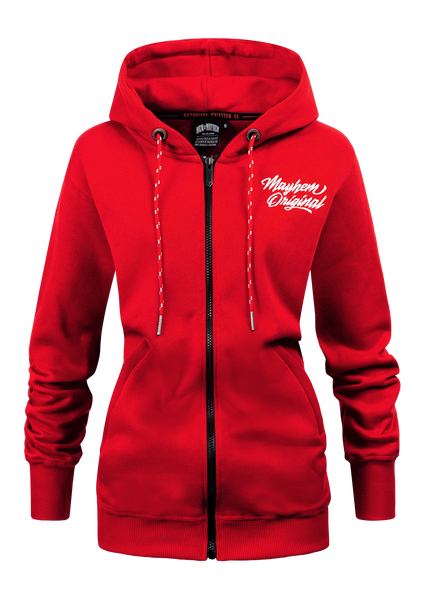 Onze Two Words One Finger‑hoodiejack voor dames combineert een heerlijk zachte, dikke sweatstof met hoogwaardige borduursels. Het cropped model heeft een aansluitende snit en is voorzien van tal van details. Een 'Mayhem Originals'-borduursel prijkt op de borst, een grote 13 op de rug en de kap is versierd met 'Two Words One Finger'.