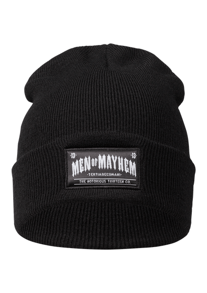 Klassisches Beanie mit umgeschlagenem Saum und gewebtem Men of Mayhem Label an der Front. Der Beanie schützt euch zuverlässig vor Wind und Wetter.