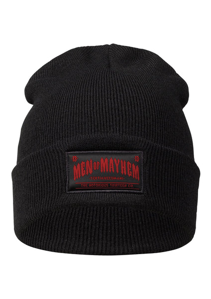 Klassisches Beanie mit umgeschlagenem Saum und gewebtem Men of Mayhem Label an der Front. Der Beanie schützt euch zuverlässig vor Wind und Wetter.