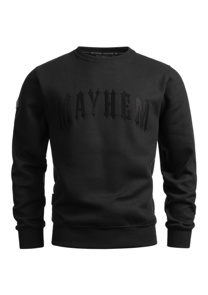 Der Crewneck Mayhem B/B zeichnet sich besonders durch den MAYHEM Logo-Stick auf der Brust, sowie die gestickten 13 im Nacken aus. Beides Ton in Ton gestickt.