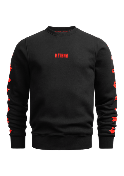 Die "Notorious Thirteen" Crewneck Teile zeichnen sich besonders durch den dezenten Logo-Stick auf der Brust, den Schriftzügen auf den Ärmeln und dem auffälligen römisch 13-Print auf dem Rücken aus. Natürlich sind unsere Notorious Thirteen Crewnecks mit den Mayhem-typischen Merkmalen ausgestattet. Zu diesen zählen das bedruckte Nackenband, sowie das Men of Mayhem Label in der Seitennaht. Für die passende Haptik sorgt der 320 g/m² schwere Sweatstoff, der super weich und angenehm auf der Haut ist.