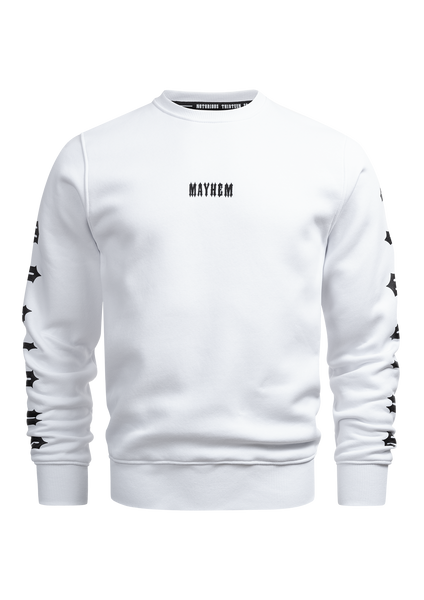 Die "Notorious Thirteen" Crewneck Teile zeichnen sich besonders durch den dezenten Logo-Stick auf der Brust, den Schriftzügen auf den Ärmeln und dem auffälligen römisch 13-Print auf dem Rücken aus. Natürlich sind unsere Notorious Thirteen Crewnecks mit den Mayhem-typischen Merkmalen ausgestattet. Zu diesen zählen das bedruckte Nackenband, sowie das Men of Mayhem Label in der Seitennaht. Für die passende Haptik sorgt der 320 g/m² schwere Sweatstoff, der super weich und angenehm auf der Haut ist.