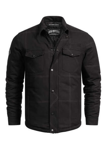 An der Schulter ist die MEN OF MAYHEM Raute als Metall-Applikation angebracht.