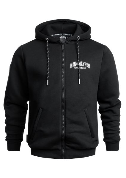 Auf der Brust befindet sich unser Classic Logo in Form eines hochwertigen Sticks, auf der Rückseite ist eine große 13 gestickt. Die Kapuze ist zusätzlich mit einem großen Mayhem Schriftzug versehen, ebenfalls als Stick.