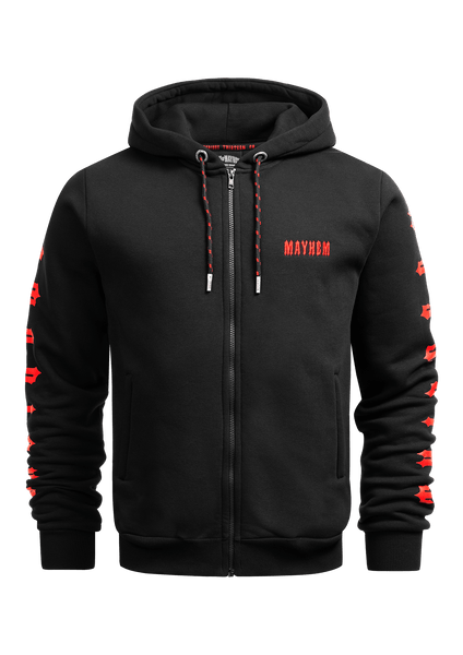 Die "Notorious Thirteen" Hoodie Jacken zeichnen sich besonders durch den dezenten Logo-Stick auf der Brust, den Schriftzügen auf den Ärmeln und dem auffälligen römisch 13-Print auf dem Rücken aus. Natürlich sind unsere Notorious Thirteen Hoodie Jacken mit den Mayhem-typischen Merkmalen ausgestattet. Zu diesen zählen das bedruckte Nackenband, sowie das Men of Mayhem Label in der Seitennaht.