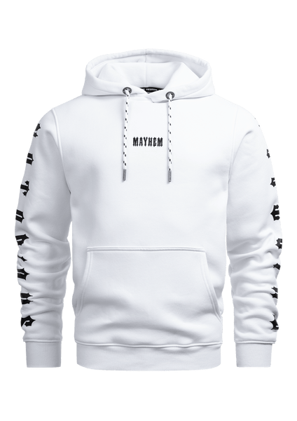 Natürlich sind unsere Notorious Thirteen Hoodies mit den Mayhem-typischen Merkmalen ausgestattet. Zu diesen zählen das bedruckte Nackenband sowie das Men of Mayhem Label in der Seitennaht.