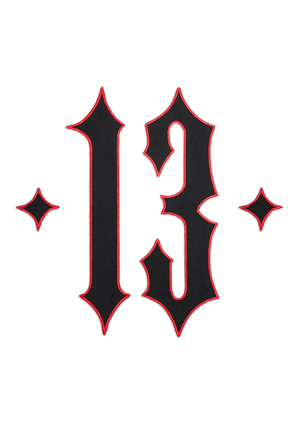 Großes 13 Patch aus 4 einzelnen Teilen mit einer Klebeschicht zur Hitzefixierung und hitzebeständiger Trägerfolie.